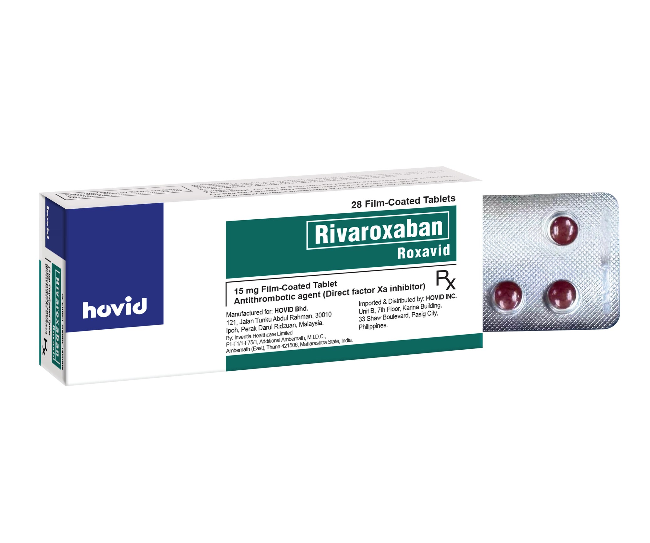 | Statement | Roxavid is a blood thinner that helps prevent harmful blood clots from forming in the body. Lower the risk of stroke and blood clots in adults with irregular heartbeat (called non-valvular atrial fibrillation) who also have one or more risk factors such as heart failure,high blood pressure,age 75 years or older,diabetes,or a previous stroke or mini-stroke. Treat blood clots in the veins (deep vein thrombosis or DVT) and blood clots in the lungs (pulmonary embolism or PE). Prevent DVT and PE from coming back in adults. Available in a blister pack of 7 film-coated tablets (box of 28’s). |